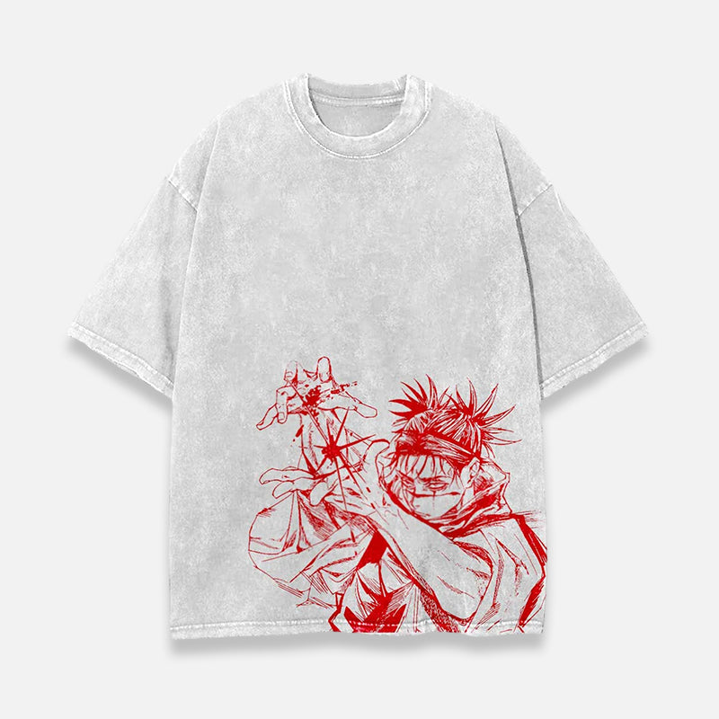 This light gray t-shirt highlights Choso in the midst of manipulating his own blood, showcasing his unique mastery of blood manipulation. On the back, the iconic blood mark present on his face reminds us of his power and heritage, making this t-shirt a must-have for fans of the series.