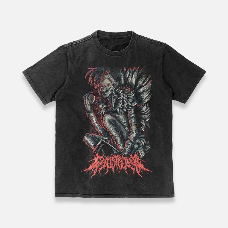 Dive into the dark universe of Death Note with our Ryuk T-shirt, a captivating piece of clothing showcasing the legendary shinigami Ryuk.