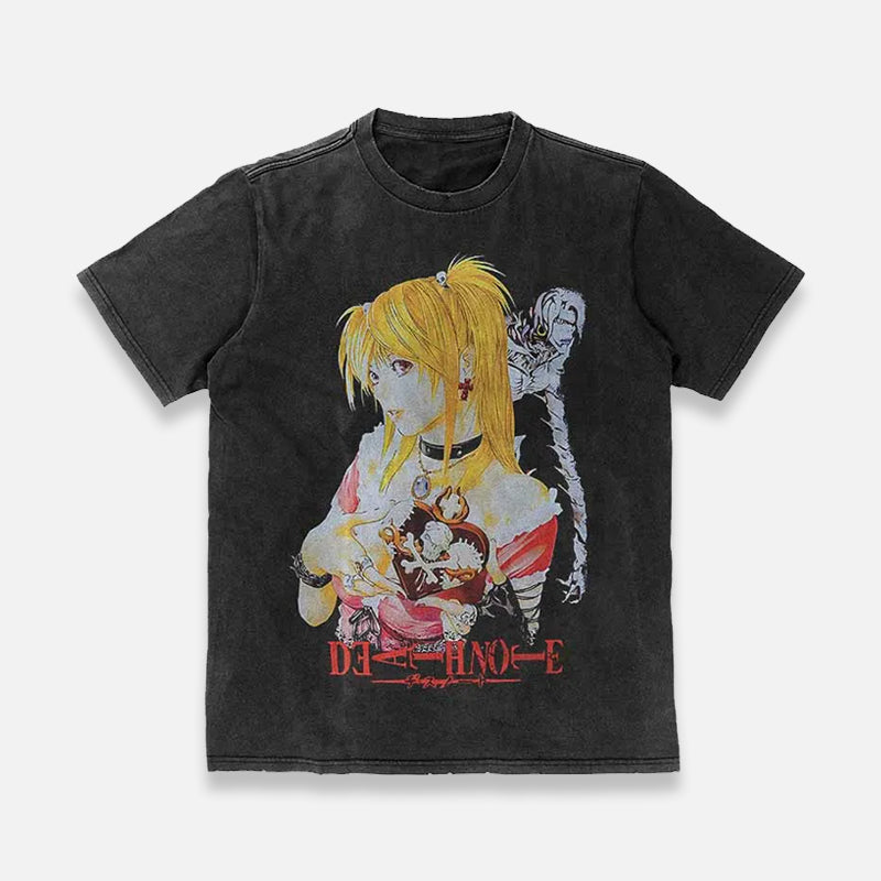 - Versatile Style: Thanks to its graphic design and washed black color, this Death Note T-shirt is perfect for pairing with many types of bottoms, allowing you to wear it anytime.
